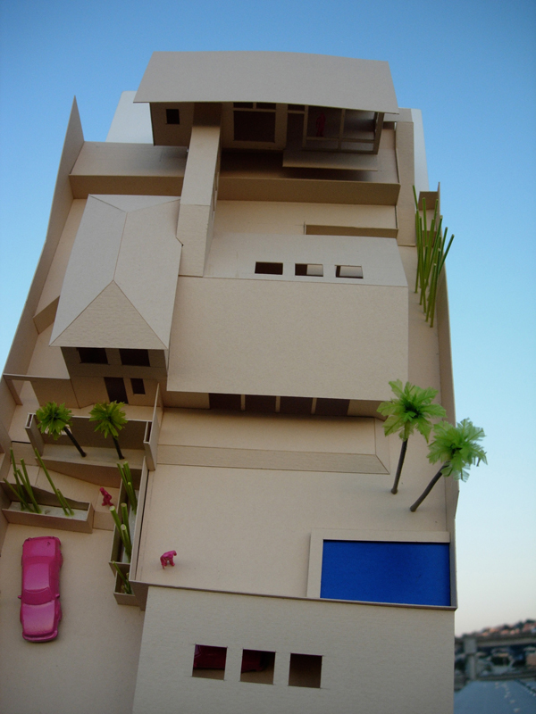Providing an area to park and turn cars around on this hillside lot dovetailed with a master bedroom addition further up the hill.